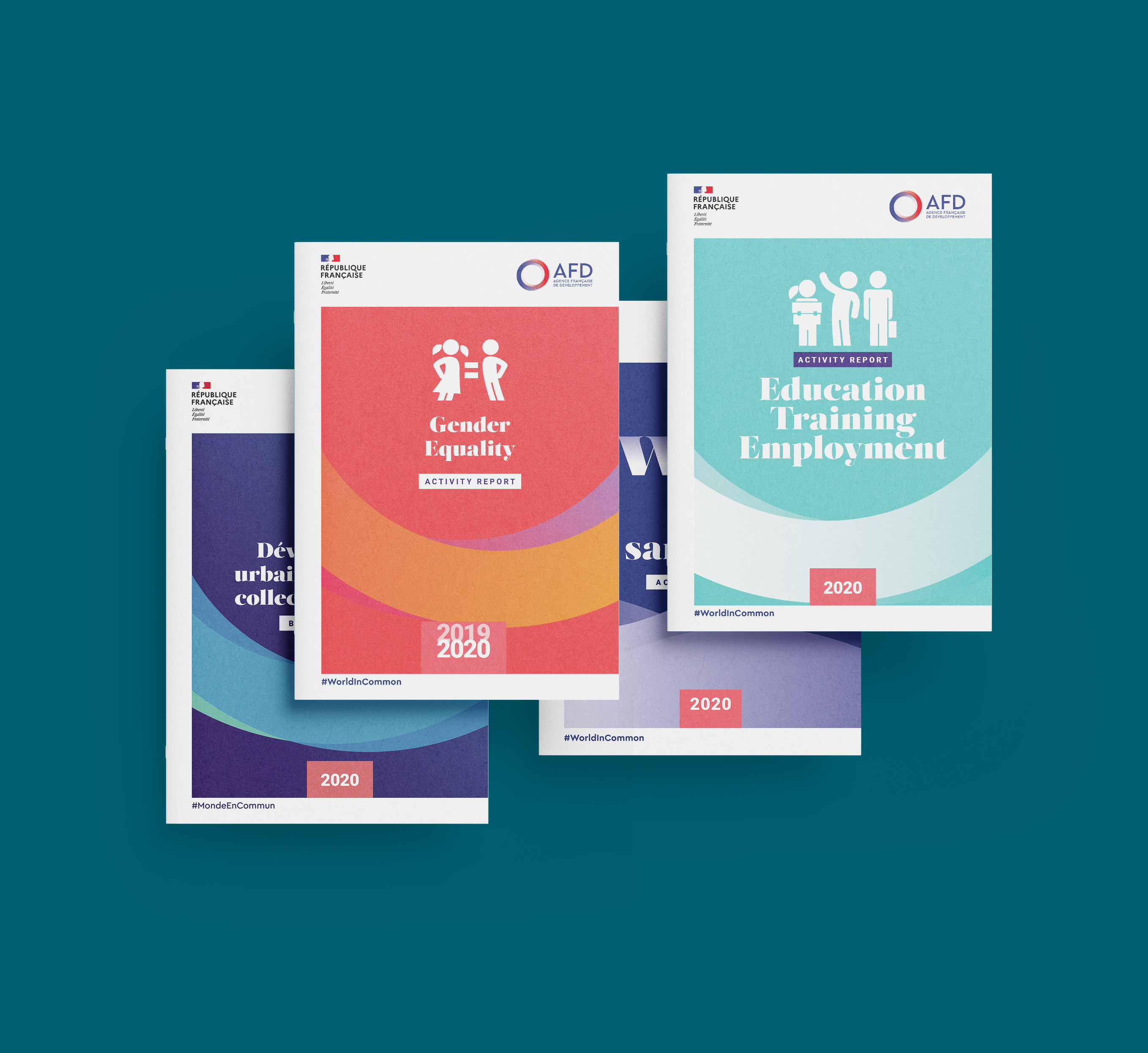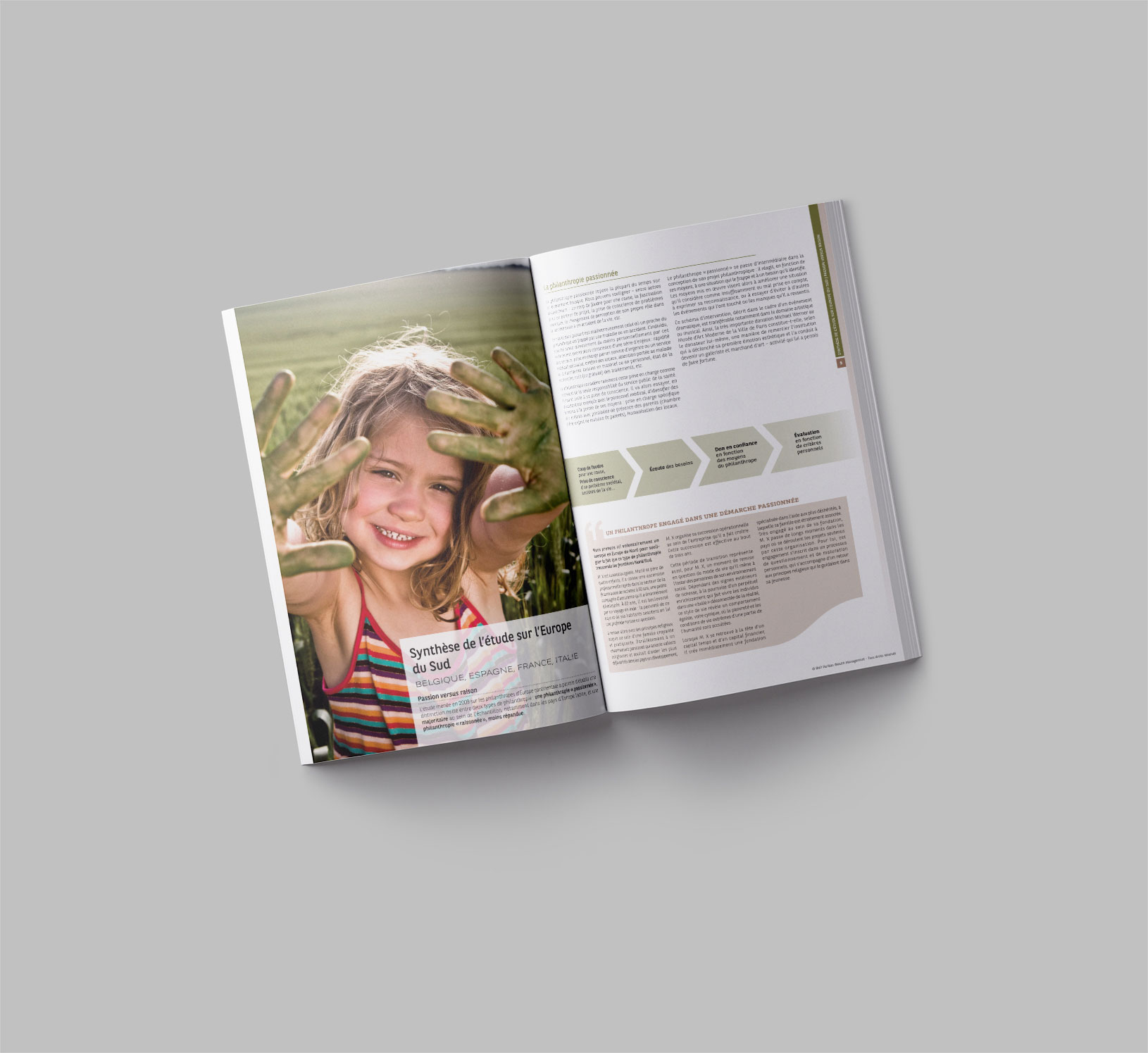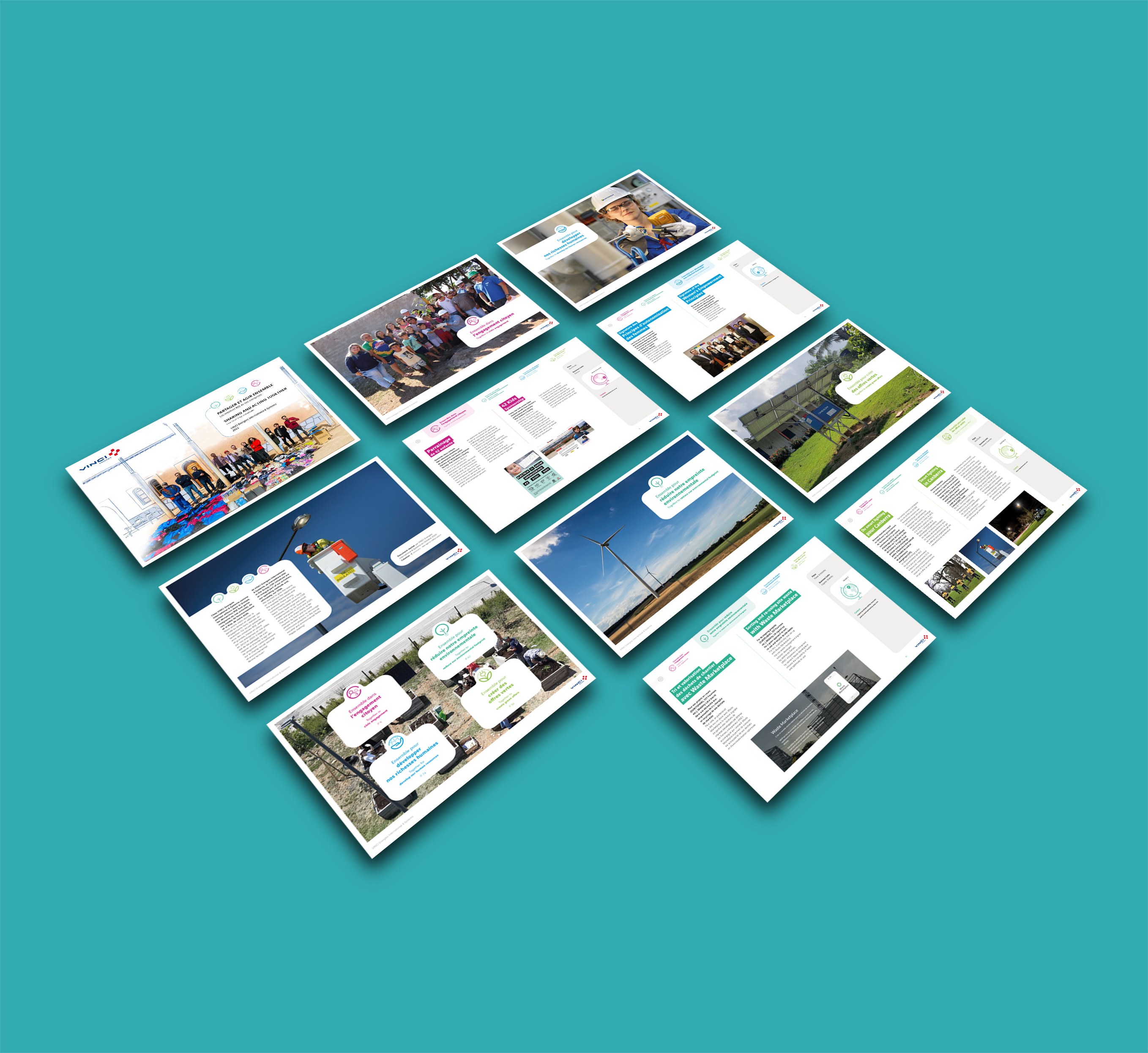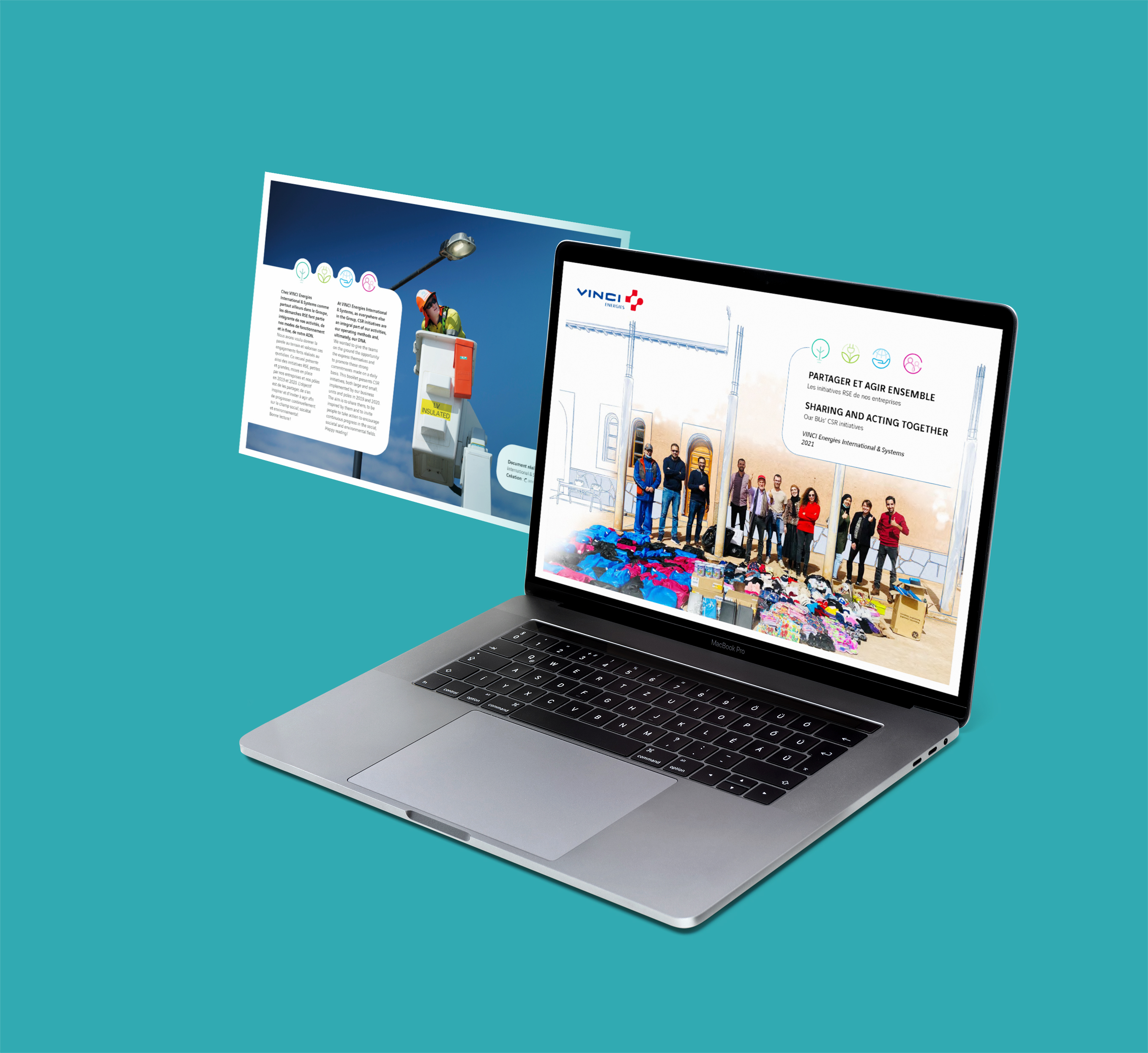 Les pictogrammes représentatifs de chaque grande catégorie sont inspirés du sigle « power » symbolisent la mise en marche des actions. Une création sobre et aérée permet aux lecteurs de découvrir les actions engagées au niveau internationale d’un groupe en action.