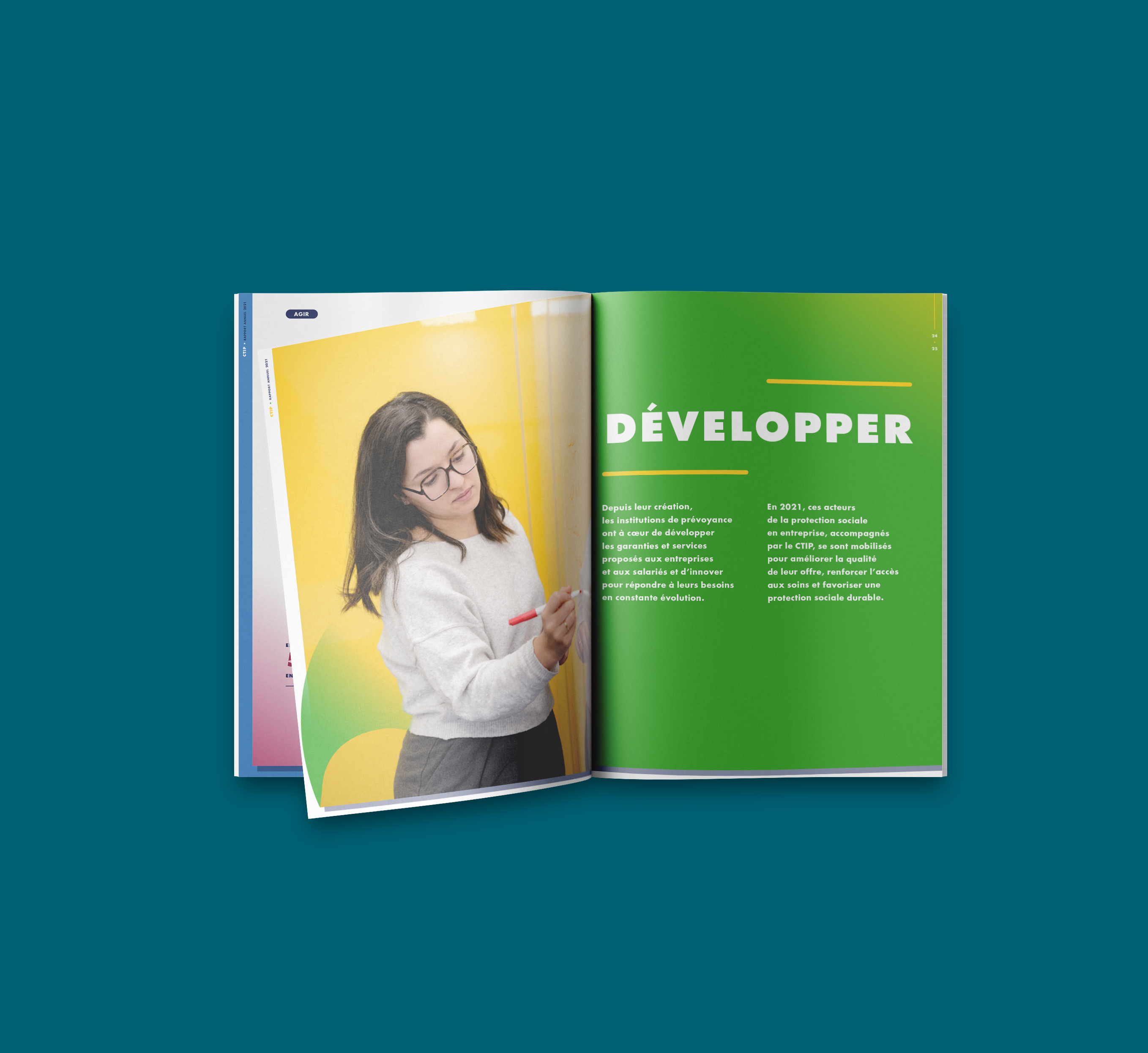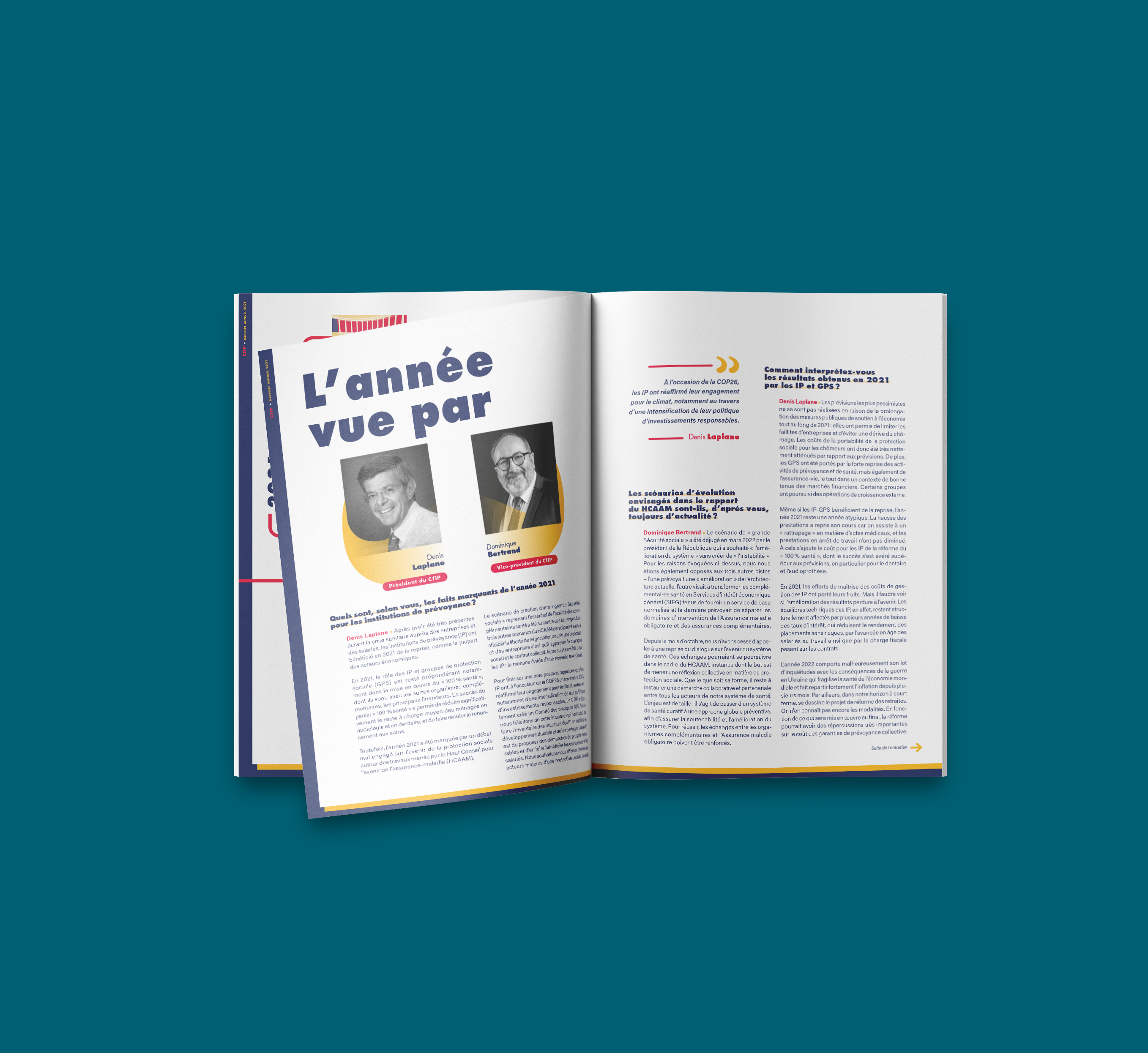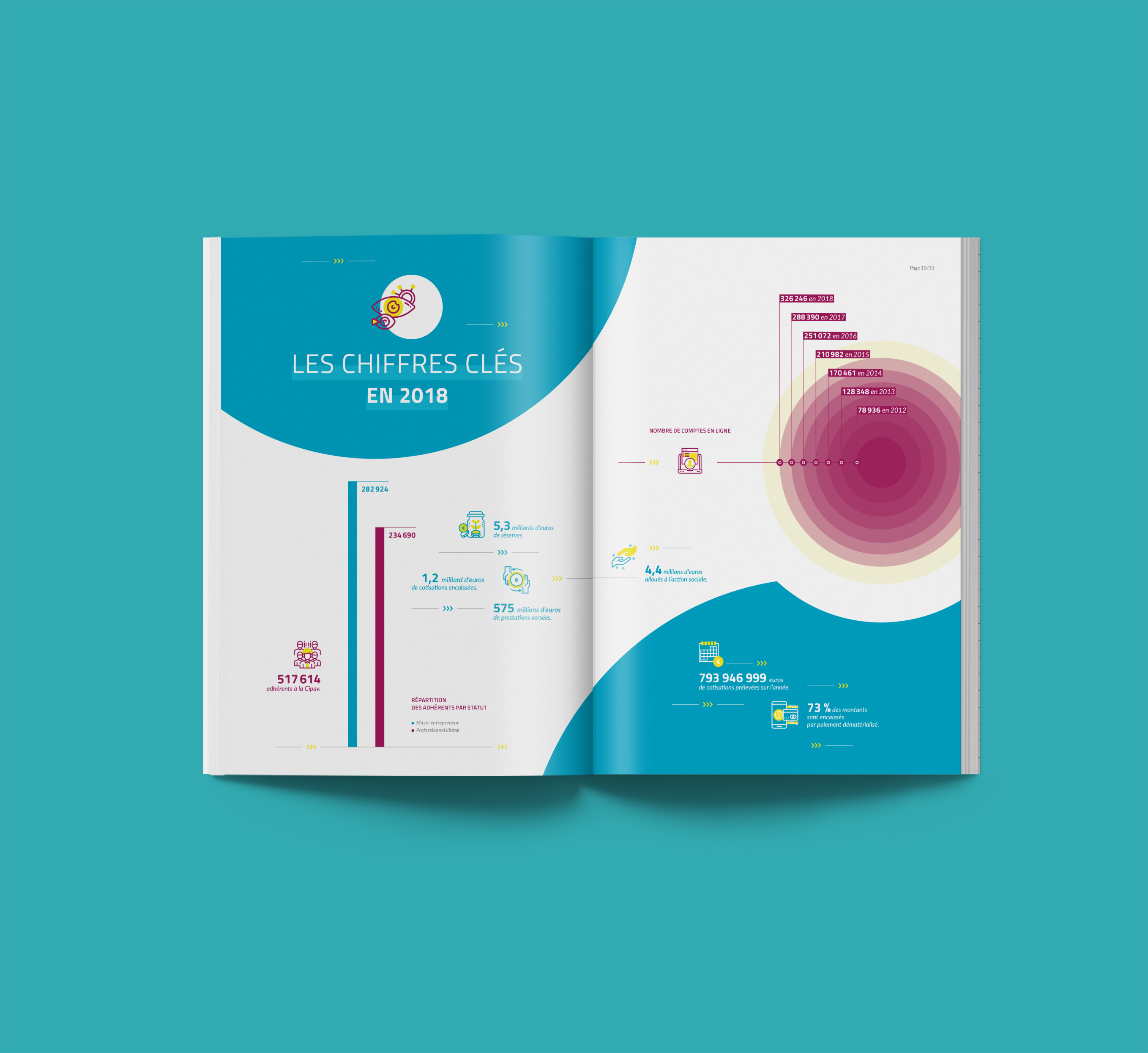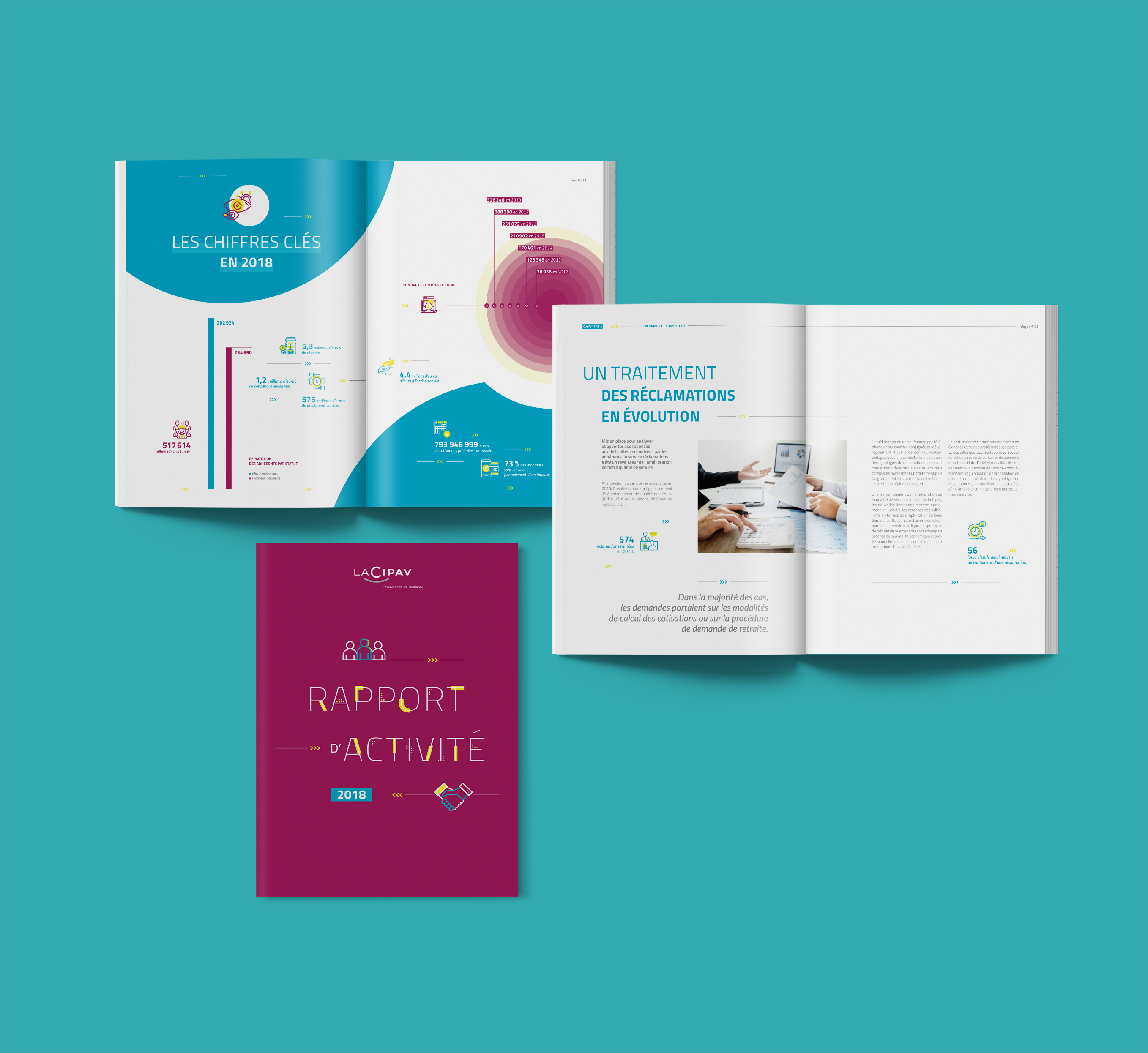 Pour le rapport global, en seulement 10 jours, l’agence a proposé et stabilisé une création et s’est attelé à la mise en pages du rapport. Aux couleurs de la Cipav, cet outil mêle contenus de fond, témoignages de collaborateurs, photographies, graphiques et infographies. C’est grâce à ce support que la Cipav entend bien démontrer comment, en trois ans, chaque salarié a contribué au rayonnement de l’entreprise !