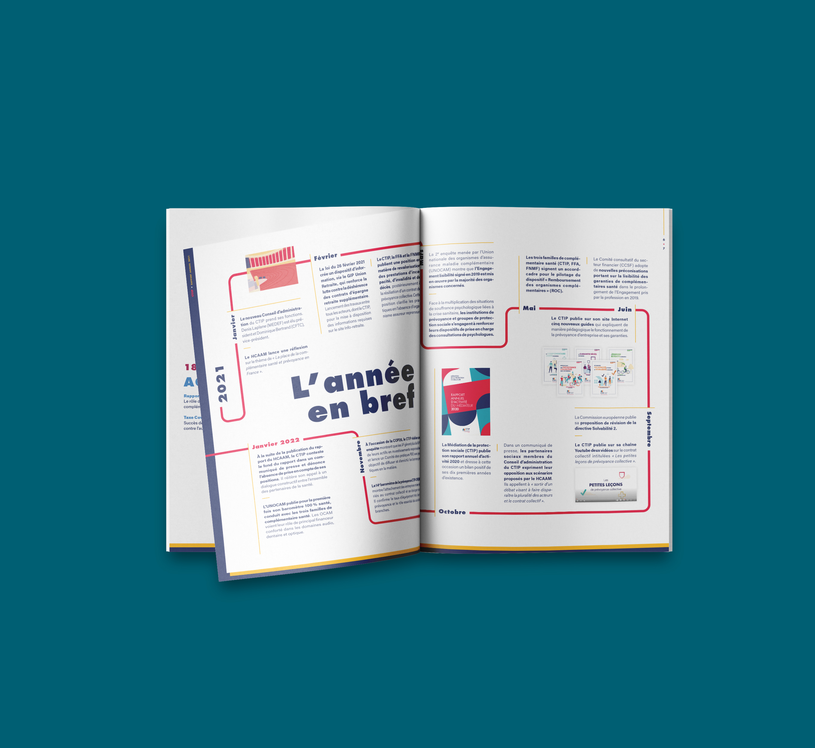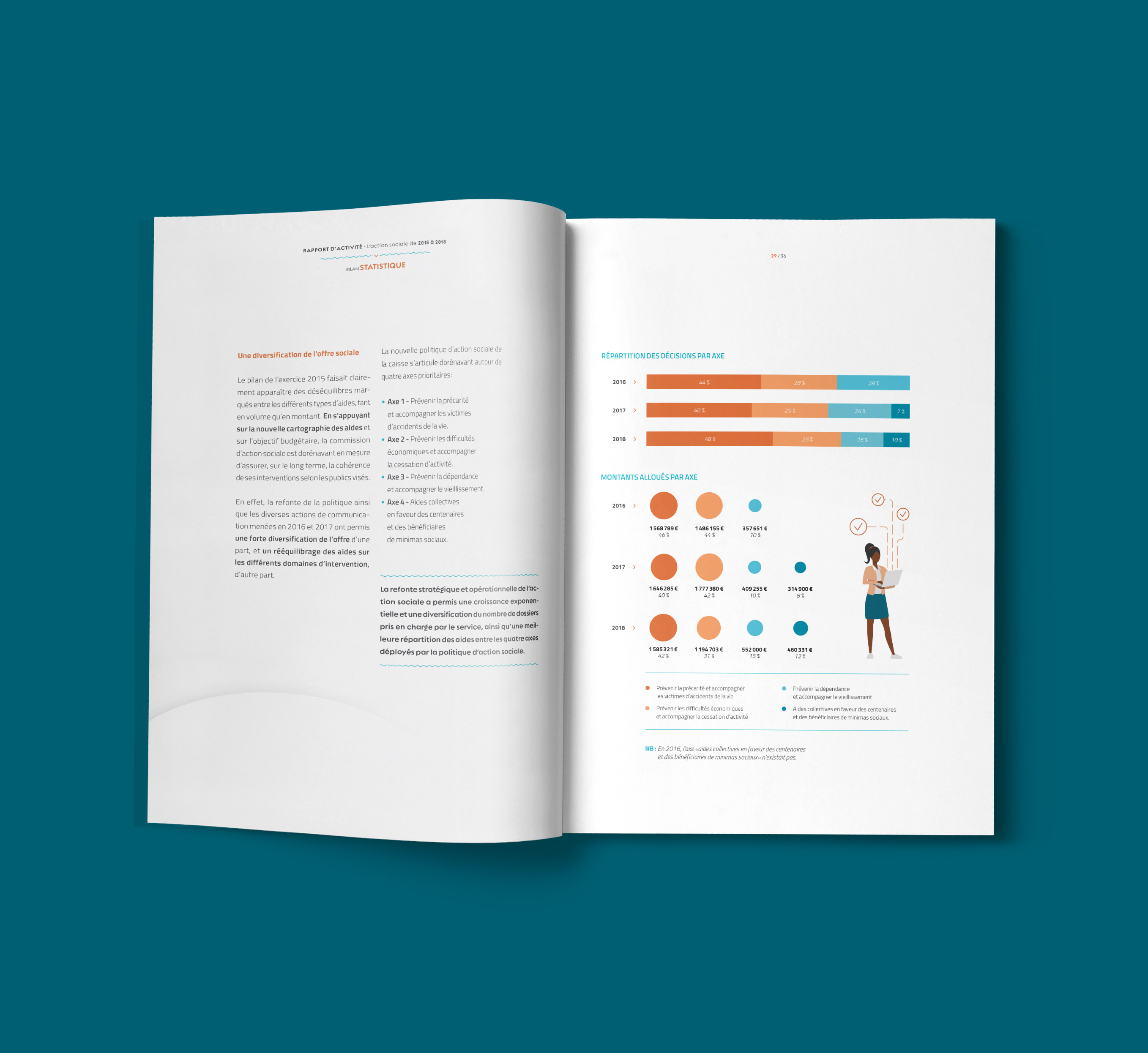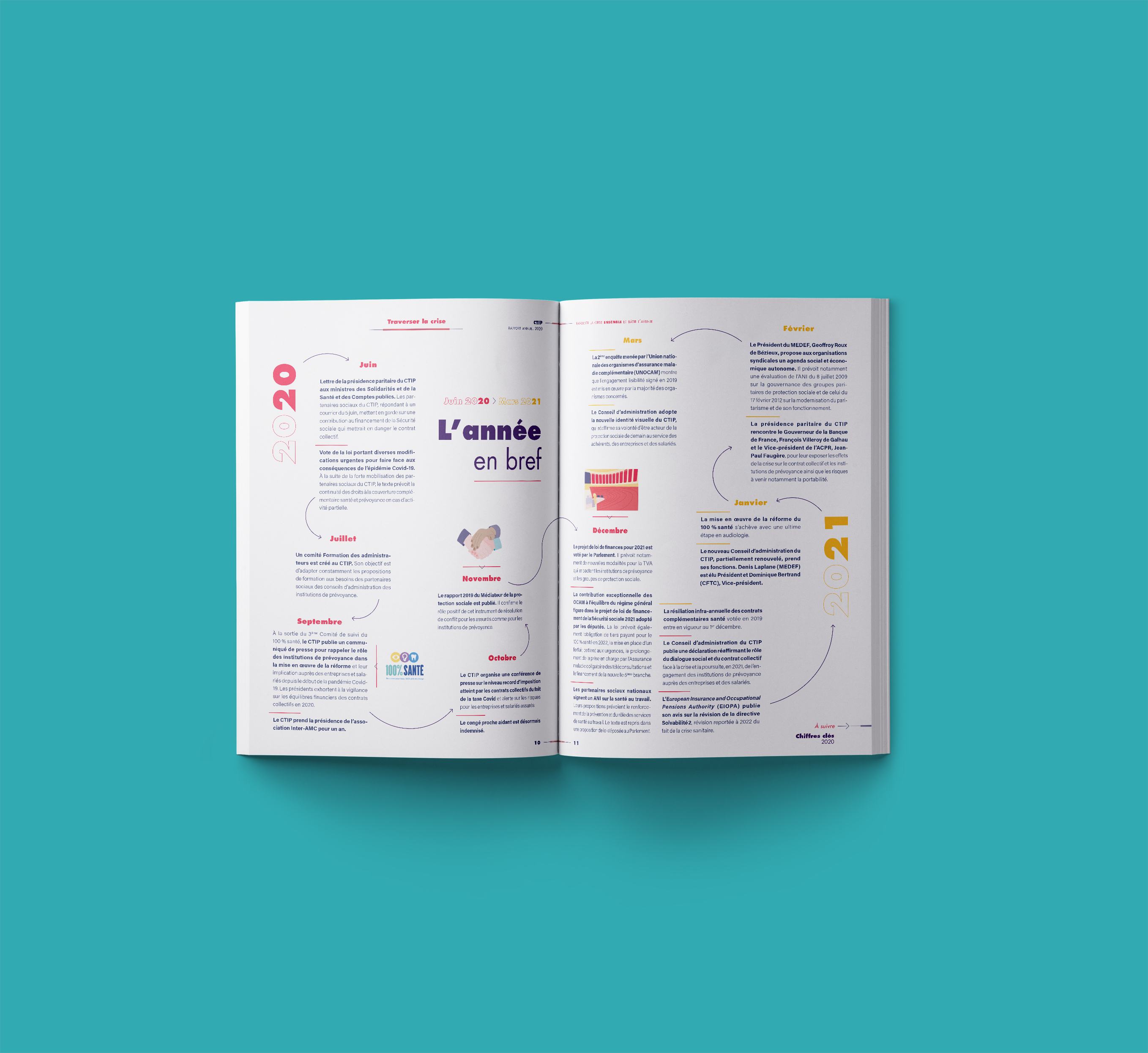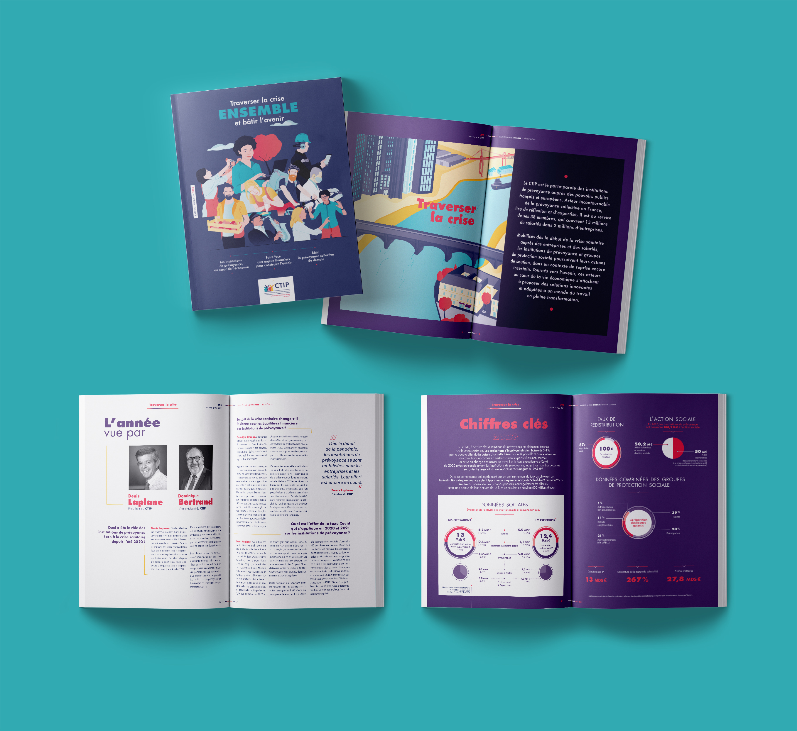 Pour le rapport global, en seulement 10 jours, l’agence a proposé et stabilisé une création et s’est attelé à la mise en pages du rapport. Aux couleurs de la Cipav, cet outil mêle contenus de fond, témoignages de collaborateurs, photographies, graphiques et infographies. C’est grâce à ce support que la Cipav entend bien démontrer comment, en trois ans, chaque salarié a contribué au rayonnement de l’entreprise !