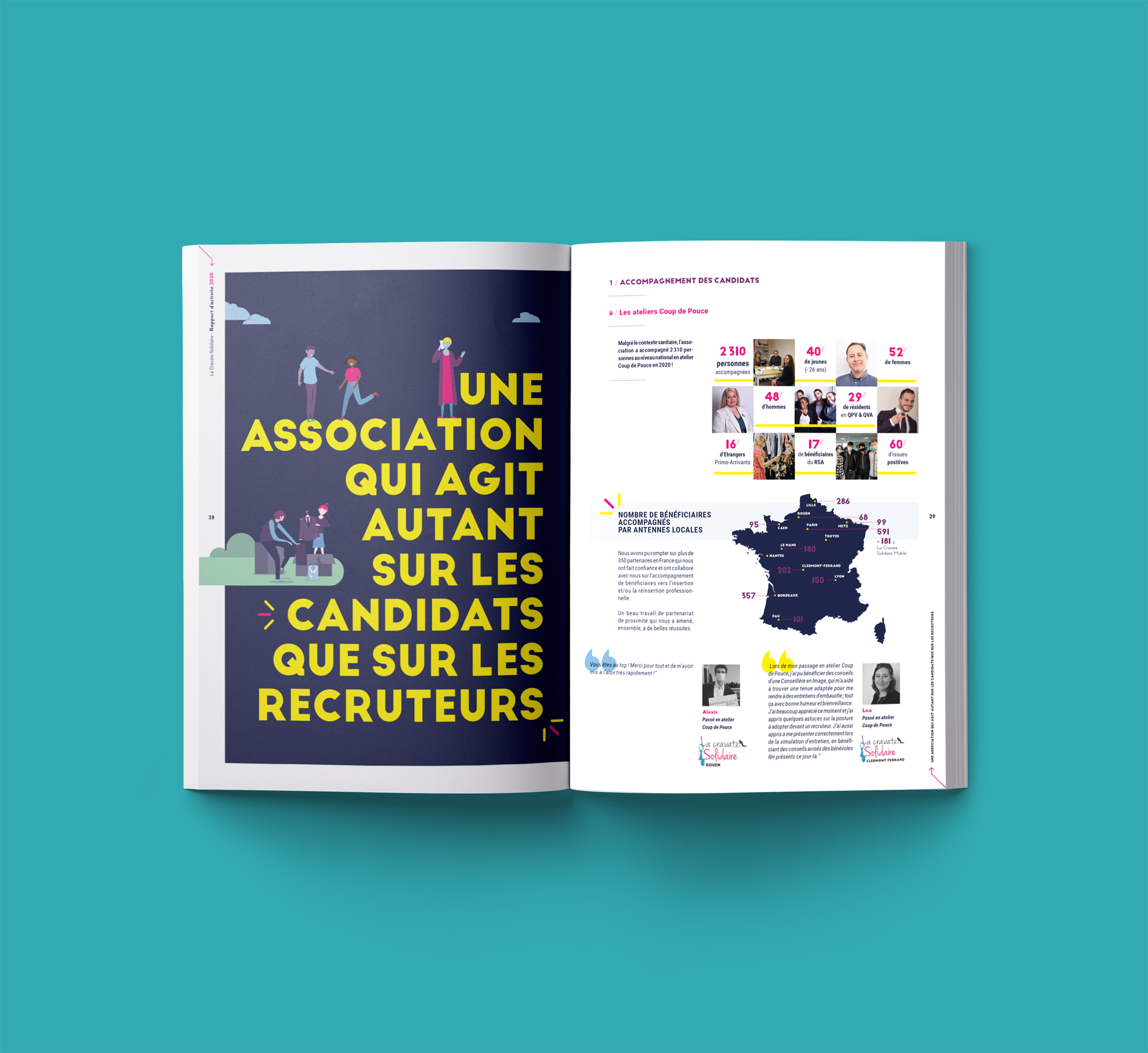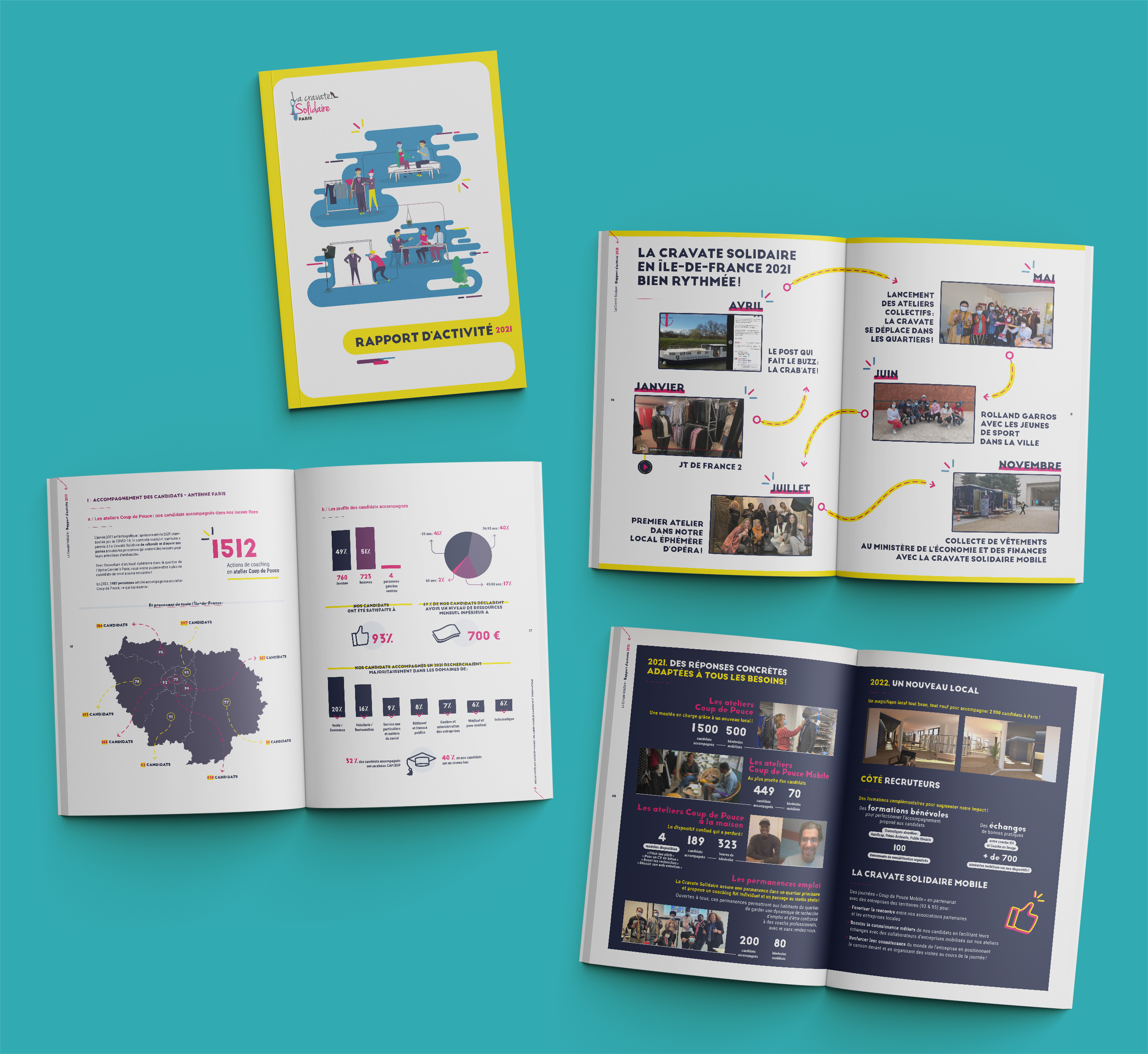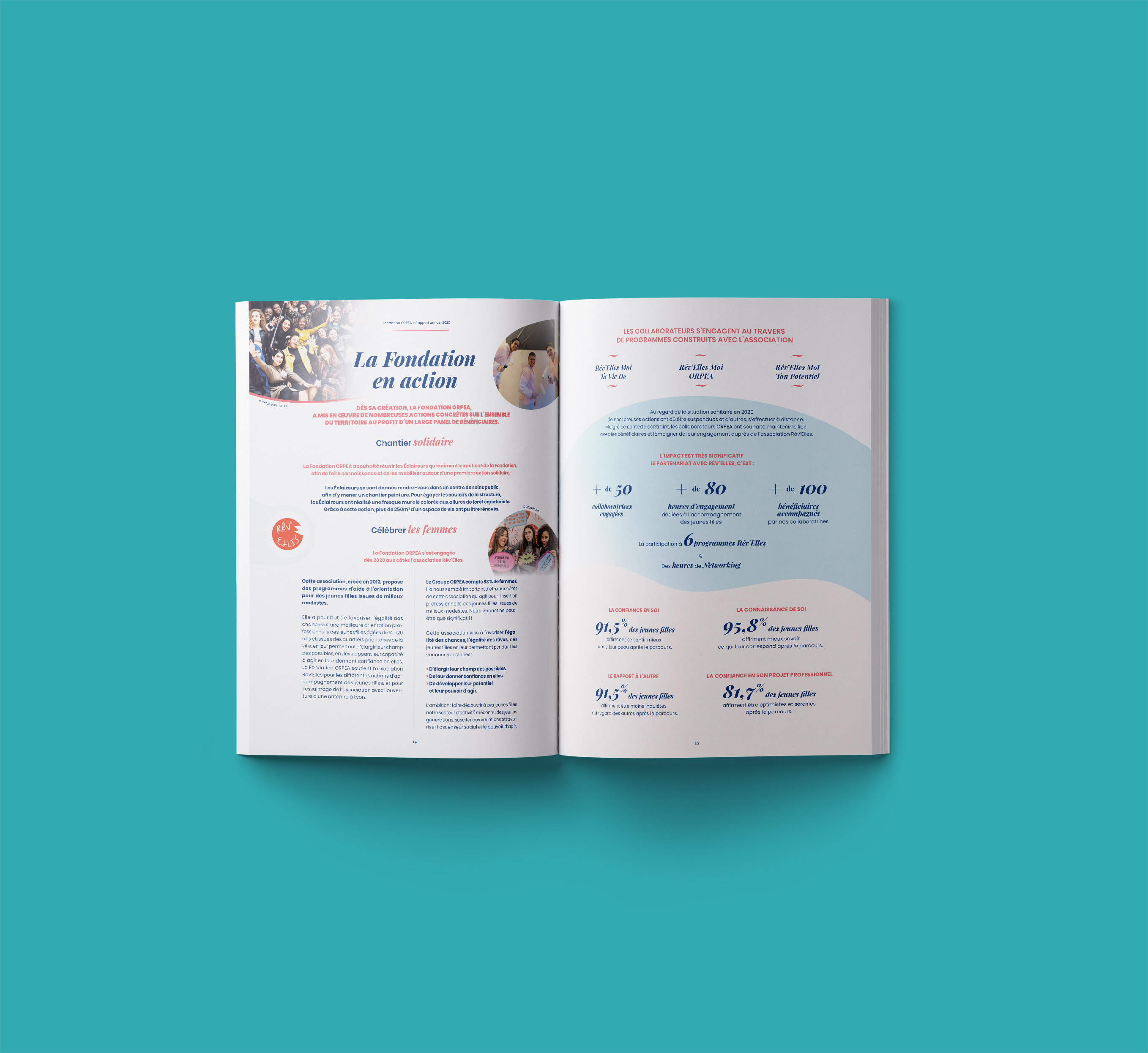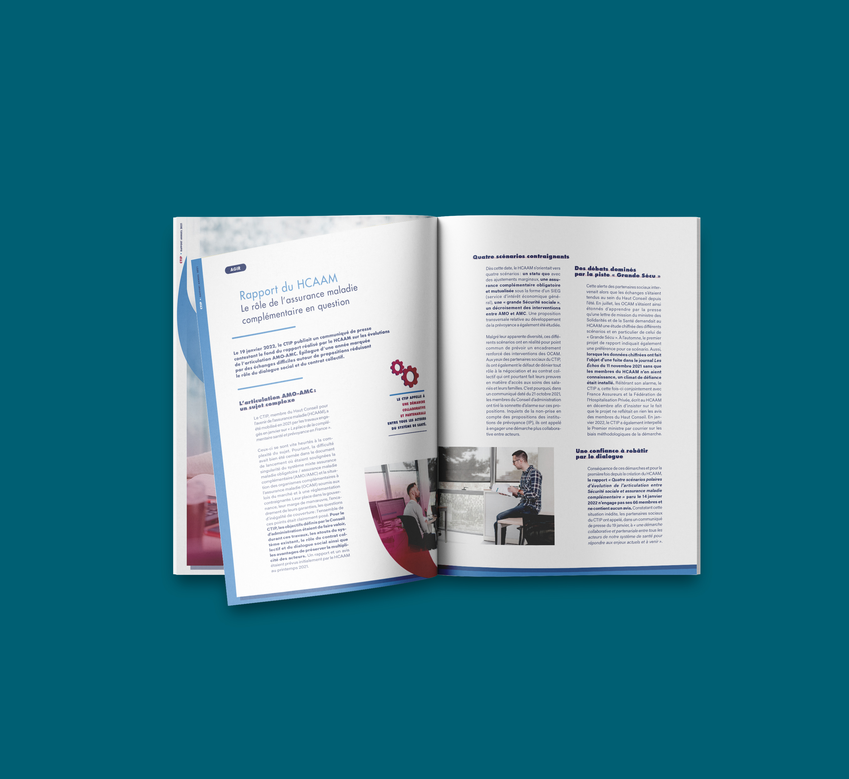 Pour le rapport global, en seulement 10 jours, l’agence a proposé et stabilisé une création et s’est attelé à la mise en pages du rapport. Aux couleurs de la Cipav, cet outil mêle contenus de fond, témoignages de collaborateurs, photographies, graphiques et infographies. C’est grâce à ce support que la Cipav entend bien démontrer comment, en trois ans, chaque salarié a contribué au rayonnement de l’entreprise !