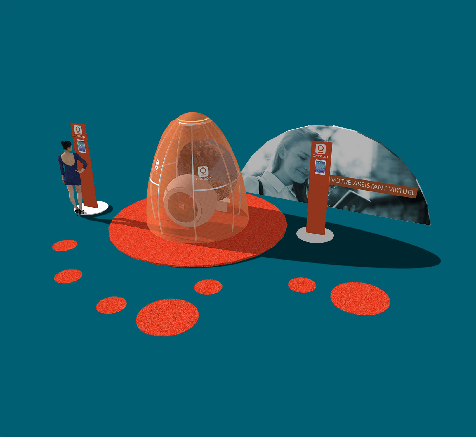 Deuxième lame expérientielle : une animation de création de trafic est imaginée avec le client : la Wish Bubble, petite bulle de plénitude au milieu du brouhaha du salon. Elle permet au visiteur de tester l’application, de faire un vœu de départ en vacances, de soirée entre amis… et à ONEapp de lancer une vidéo matérialisant le rêve exprimé !