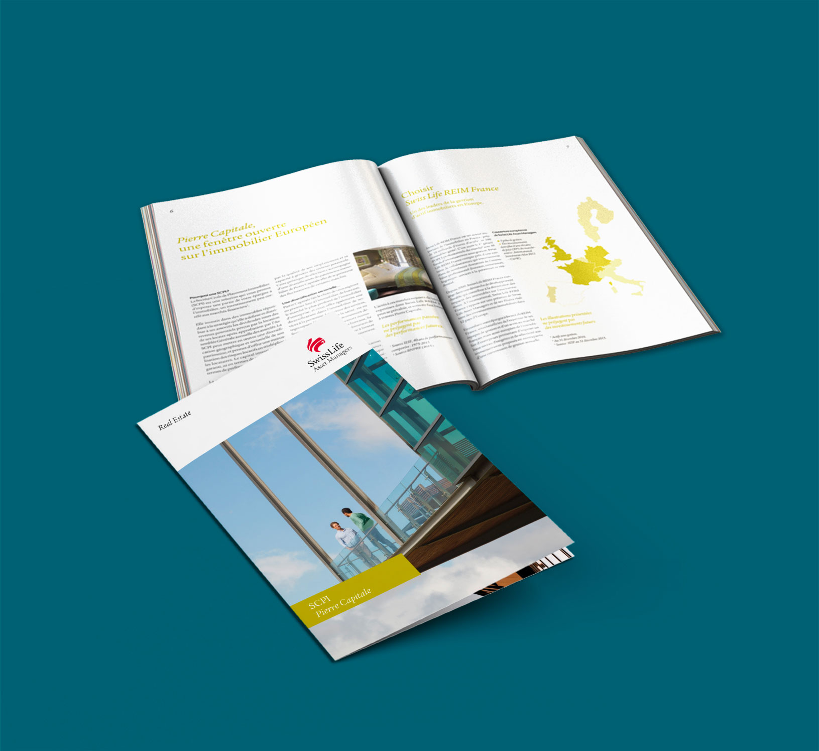 Afin d’accompagner le lancement de sa SCPI et de son OPCI, SwissLife Reim confie à Bathyscaphe la création de l’ensemble de ses outils de communication commerciale. L’agence a apporté son savoir-faire dans la conception éditoriale des plaquettes et du site pour une offre lisible et rassurante, à destination du grand public et des gestionnaires de patrimoine.