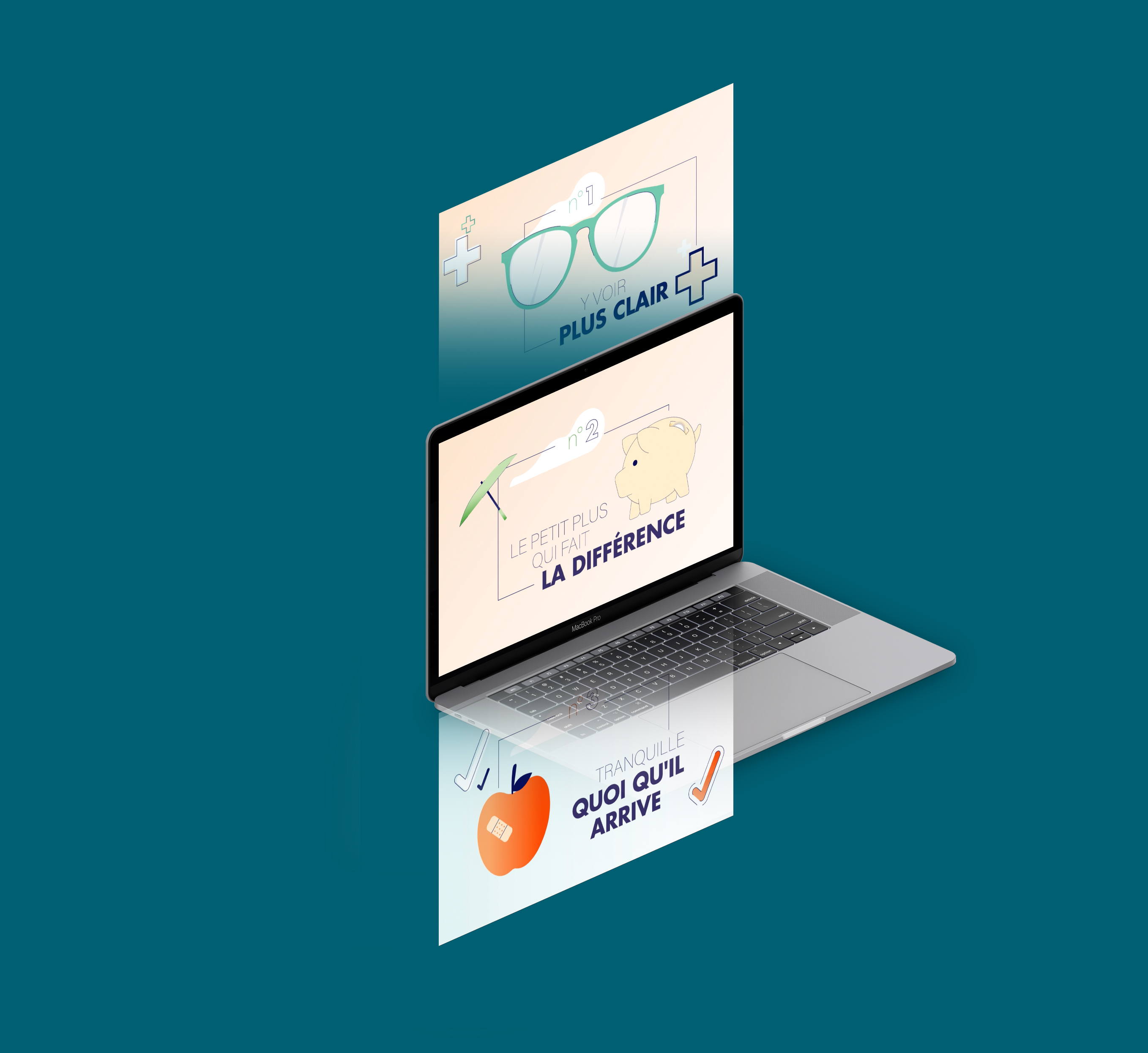 En 2018, la collaboration s’est poursuivie avec la présentation de l’offre finale. Informer, convaincre, rassurer, montrer une même ligne directrice dans la réponse grâce à une uniformité dans l’univers graphique : même traitement mais choix de nouveaux visuels pour parler du bien-être des utilisateurs au sens large. La synthèse a également été revue afin de présenter de manière détaillée l’ensemble des travaux prévus.