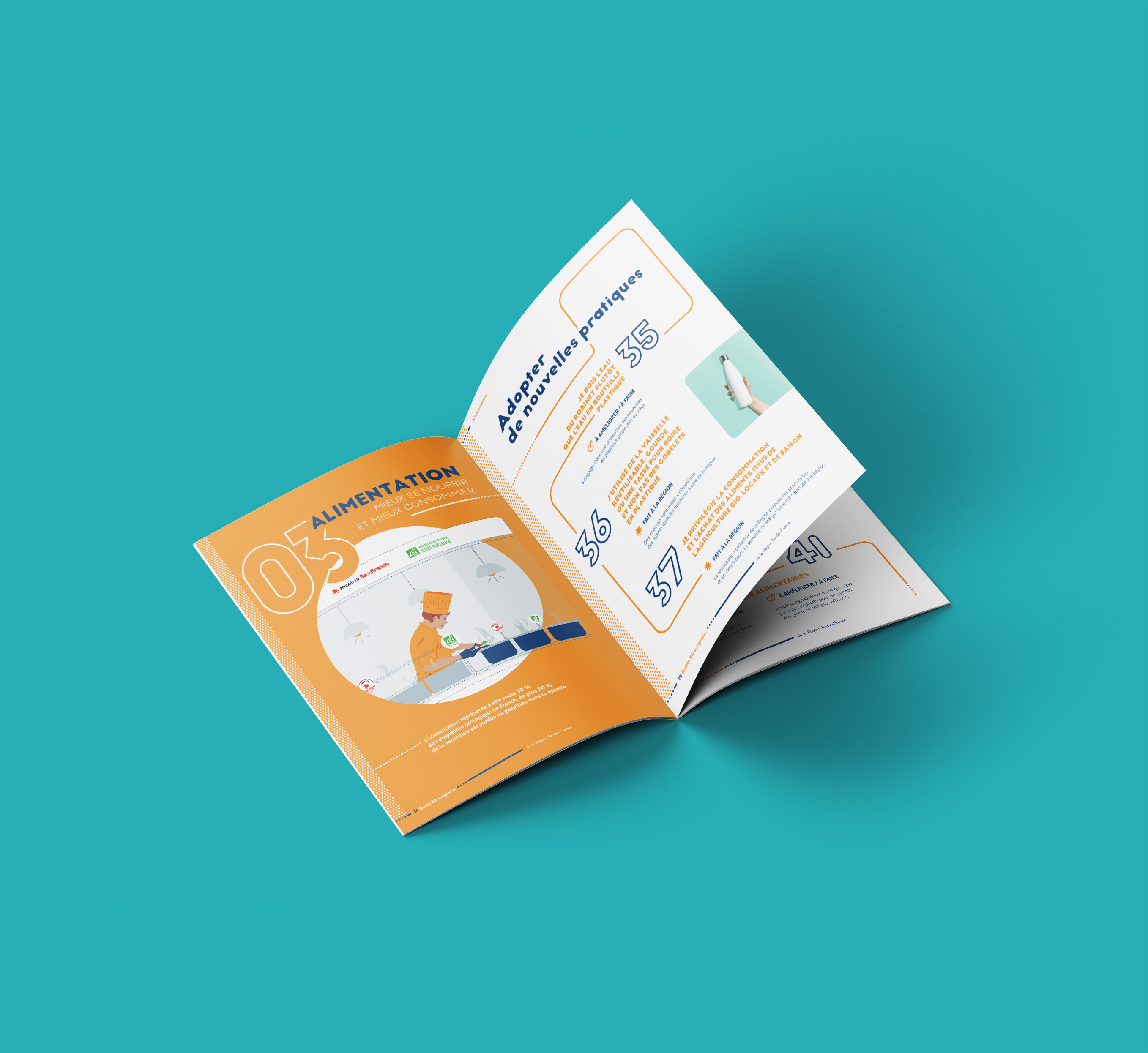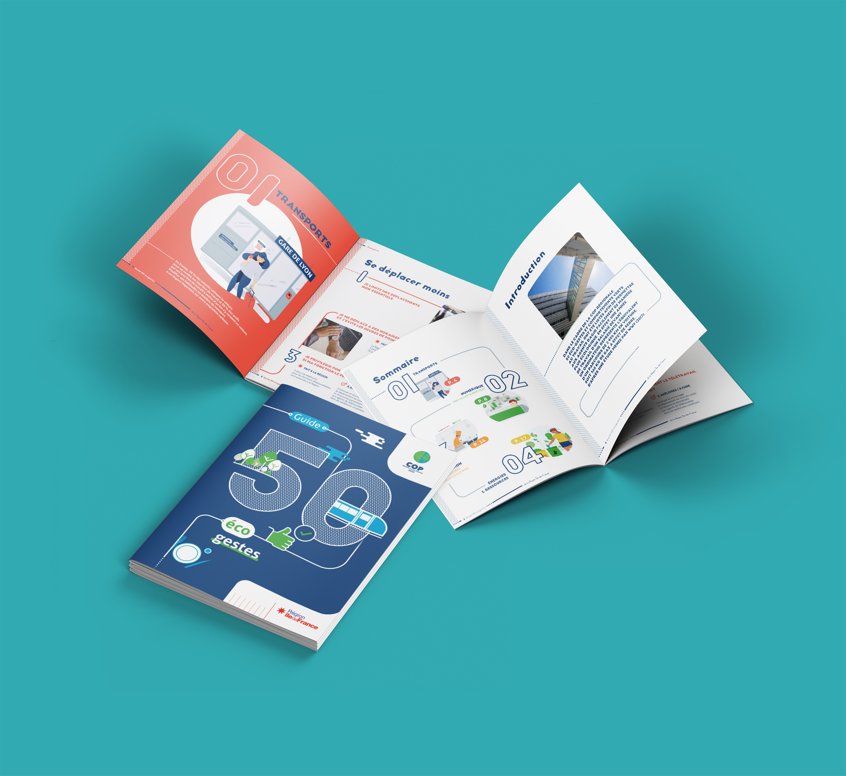 50 écogestes phares ont été ainsi sélectionnés au cœur d’une documentation reprenant les codes de la charte graphique créée pour la COP Région Île-de-France par l’agence, et mettant en exergue le lien unissant les 50 écogestes les plus importants à garder à l’esprit.