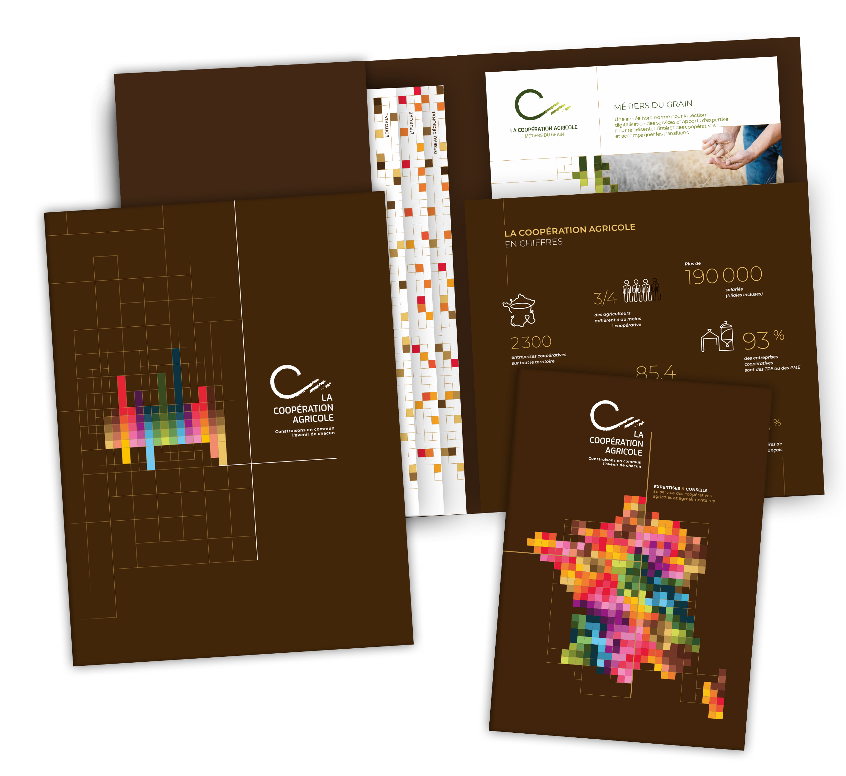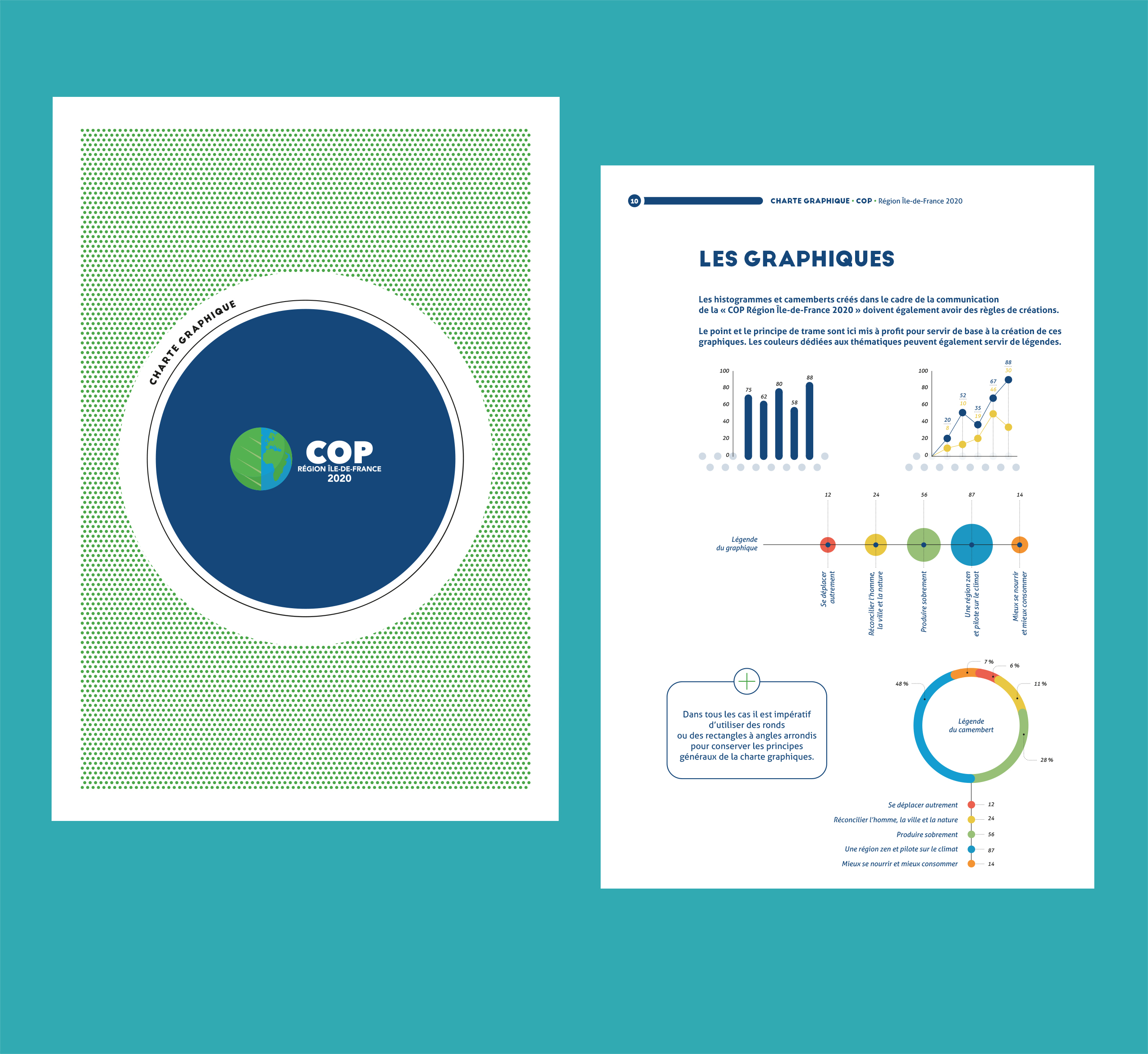 Une charte graphique est alors établie sur la base de l’identité existante : couleurs, typographies, style illustratif… tout est réfléchi pour que les futurs outils de la COP disposent d’une identité affirmée et cohérente.