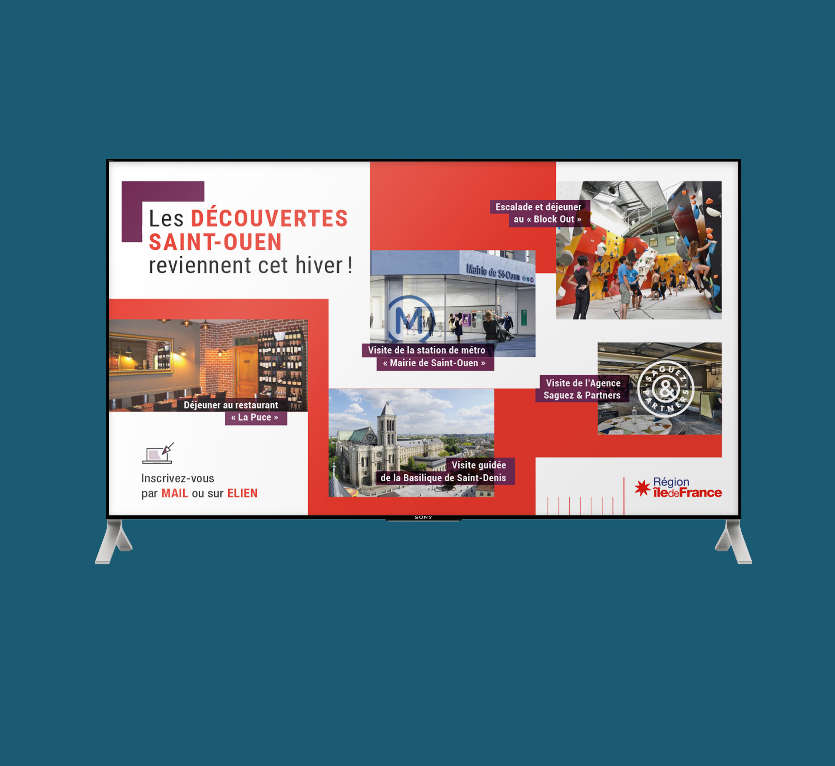 L’agence décline un storyboard et un écran dynamique puis réalise une formation auprès des équipes de la Région afin de les rendre autonomes sur l’utilisation de la charte.