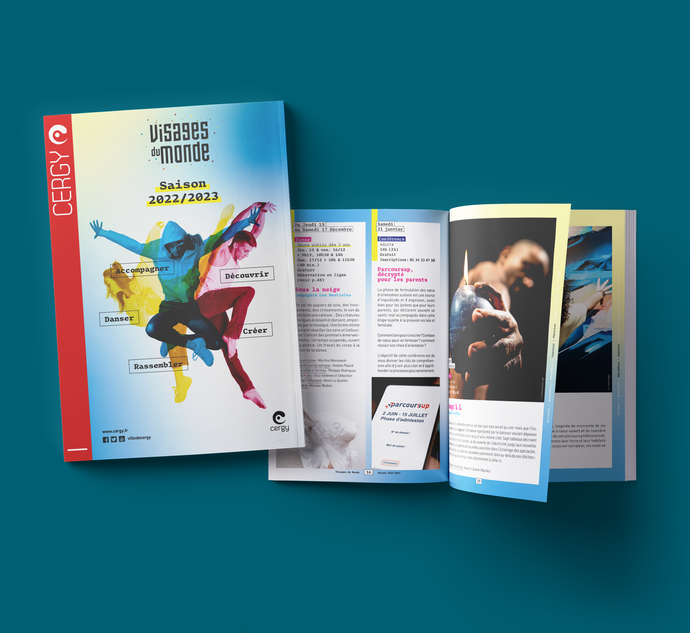 Dans les pages intérieures, les couleurs et les énergies de la couverture mettent en lumière les informations et structurent chaque événement pour transmettre aux lecteurs toutes les énergies du lieu.