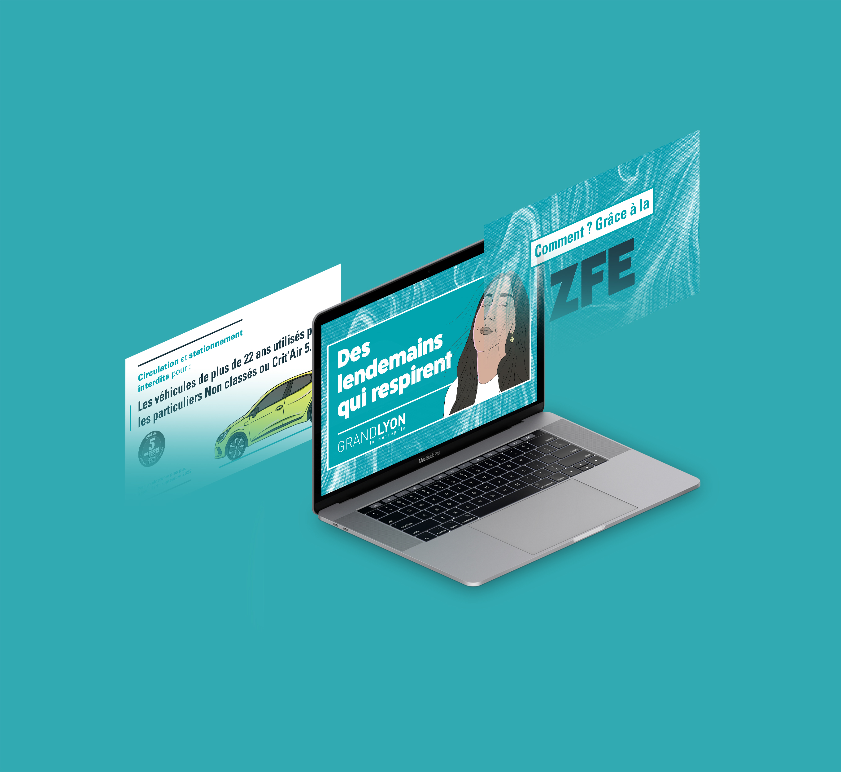Au programme : identité sémantique et graphique de la campagne et structuration du plan de communication accompagnant les différentes phases de mise en place de la ZFE. Les équipes de l’agence veilleront à sensibiliser particuliers et professionnels aux bénéfices attendus de la ZFE, mais également à promouvoir les aides à leur disposition pour s’adapter à ce changement de comportement.