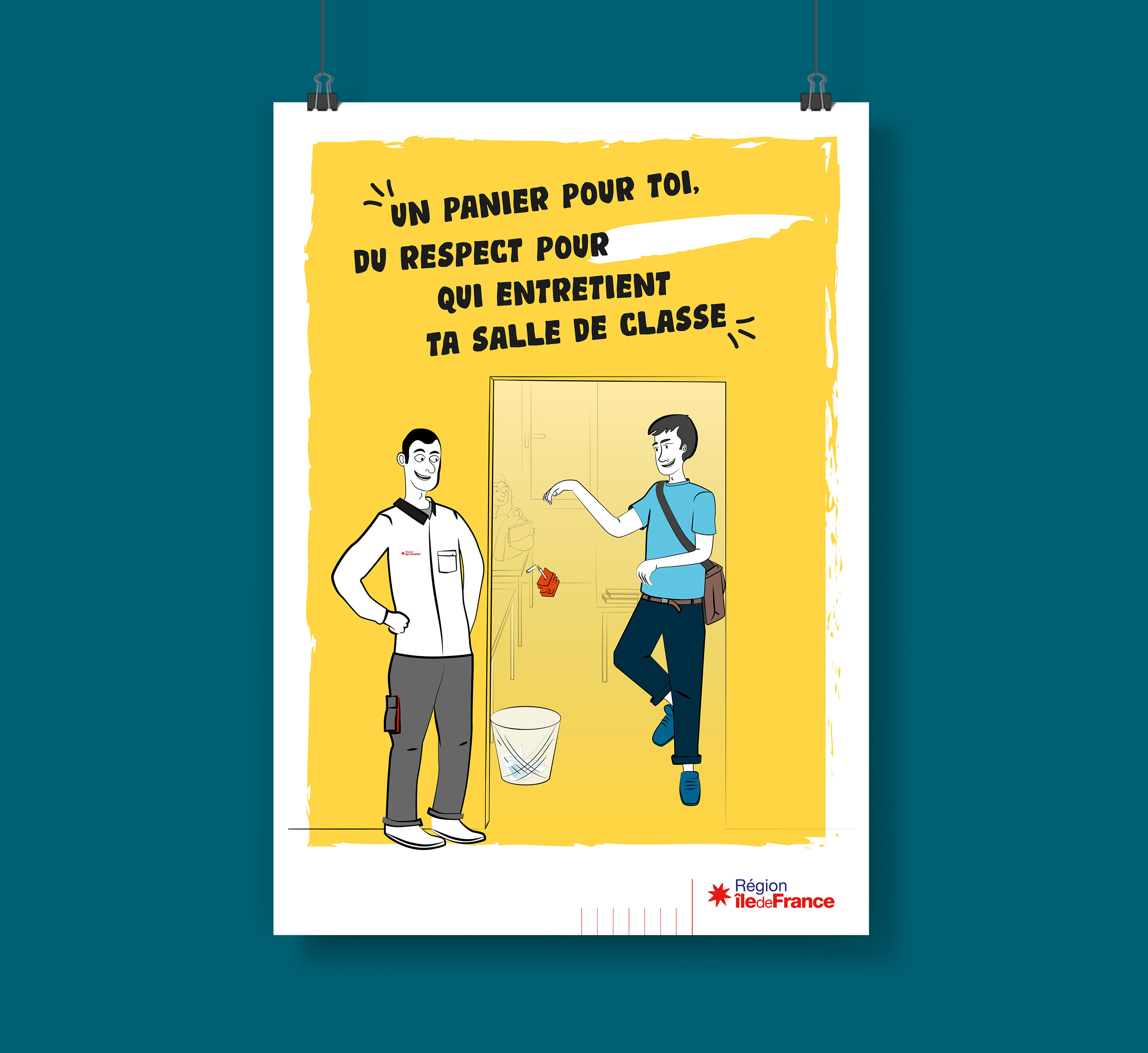 L’objectif est de changer le regard des lycéens qui ne soucient guère de ce que représente le travail de ces agents. L’idée de cette campagne d’affichage est donc mettre notre cible face à ces mauvaises habitudes pour que petit à petit, elles se rendent compte que leurs actions comptent dans le quotidien des agents !